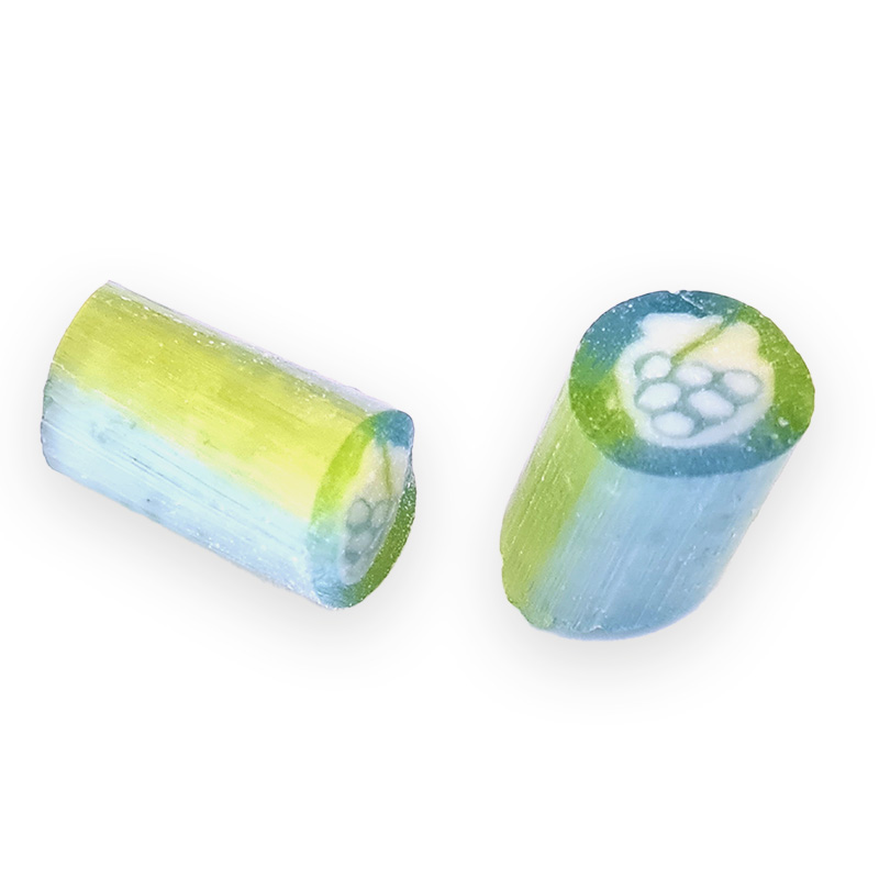 Zutaten: Zucker, Glukosesirup, Säuerungsmittel Zitronensäure, natürliche Aromen, färbende Lebensmittel Spirulina-Saftkonzentrat, Kurkumaextrakt